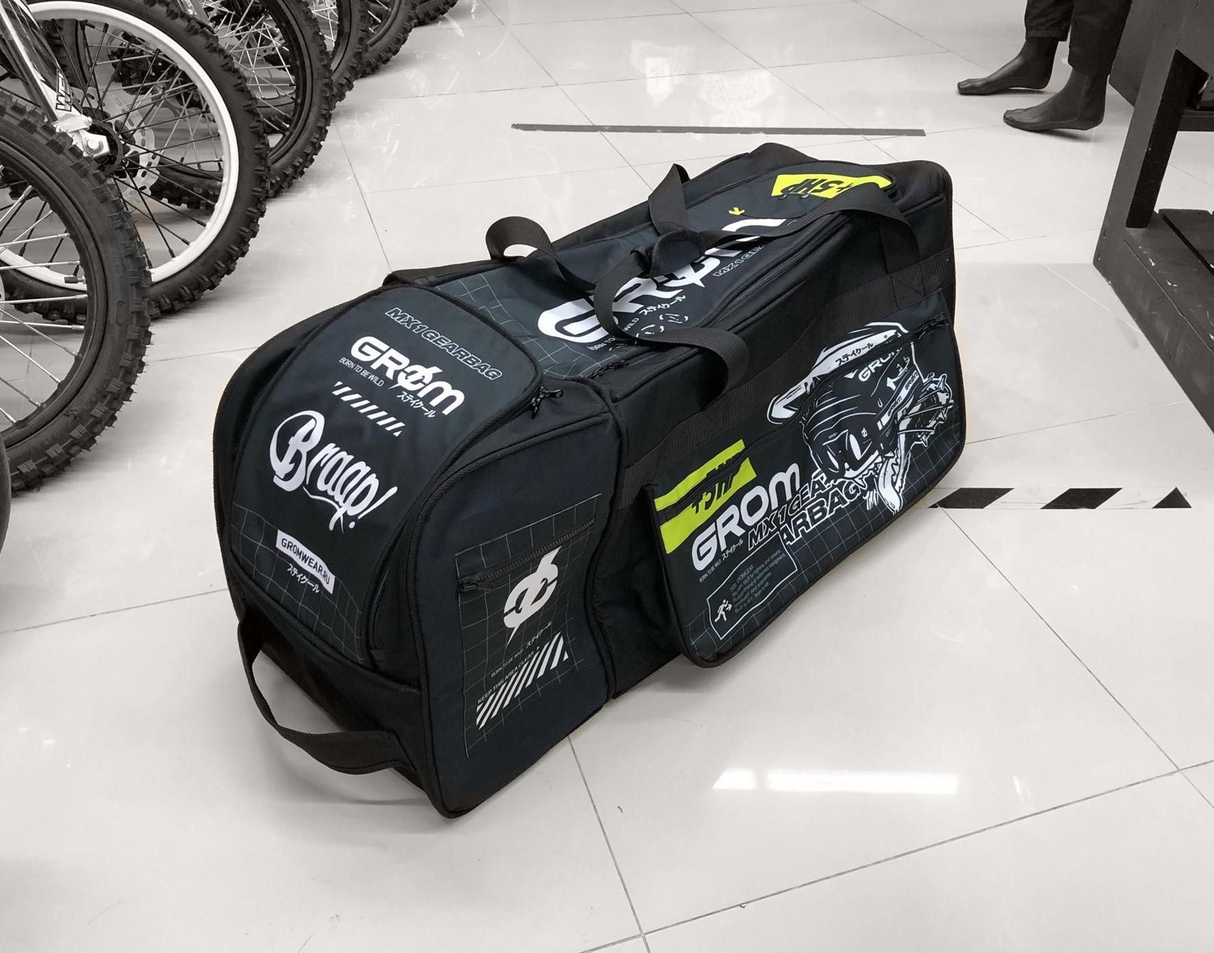 Для всех тех, кто приезжает на покатушки, соревнования в гражданской одежде. Потом переодевается, катает и снова переодевается в гражданскую одежду. У нас появилась крутейшая вместительная сумка для экипировки Grom MX1 Gearbag. Ее особенности: прочная донная вставка, 2 больших отсека, отсек для шлема, отсек для остальной экипировки, дополнительные карманы по бокам боковые, небольшой карман для разных мелочей, усиленные ручки. Выдерживают нагрузку до ~50 кг. Размеры: Д96 х В40 х Ш36 (см).
